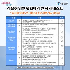 - 서울시거주 : 입원 및 진료 공단 건강검진 발생 30일 전부터 주민등록상 거주지가 서울이어야 합니다.