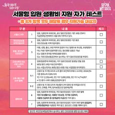 서울형 입원생활비 지원 자격은 아래의 기준을 모두 충족하여야 합니다.
